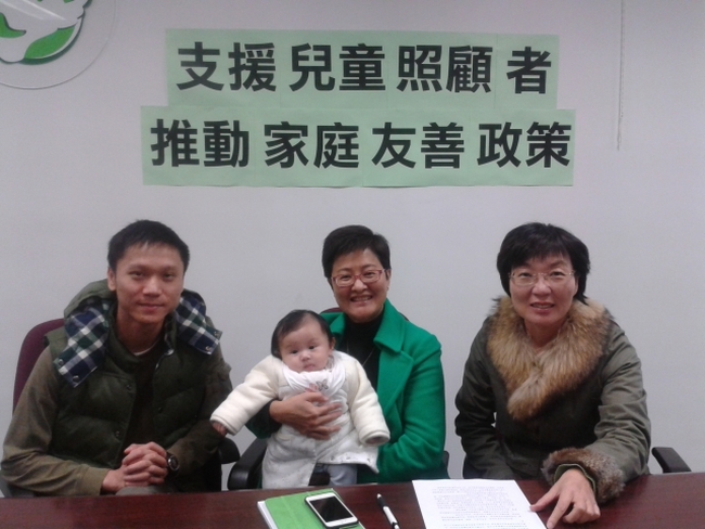 今早民主黨社區主任丁士元帶同三個月大的女兒出席記者招待會,他表示政府現時訂立的3天侍產假實不足夠,必須延長至14天才可令爸爸有更多時間照顧幼兒及妻子。丁又指出現時社區的託兒服務不足夠,基於生活考慮,夫妻之間不可能有一方辭掉工作照顧女兒,最後由丁的母親辭去工作,全力照顧孫女。
